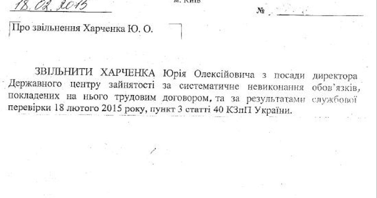 Министр социальной политики уволил директора Государственного центра занятости Юрия Харченко.