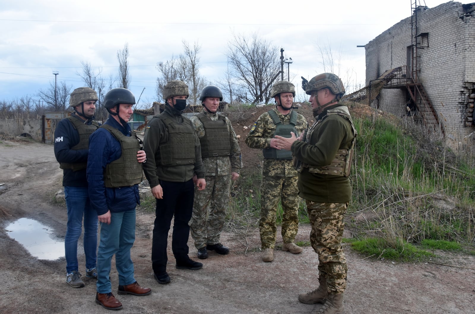 В рамках визита иностранная делегация ознакомилась с оперативной обстановкой на линии соприкосновения, которую им доложил командир отдельной механизированной бригады имени Черных Запорожцев полковник Артем Богомолов.