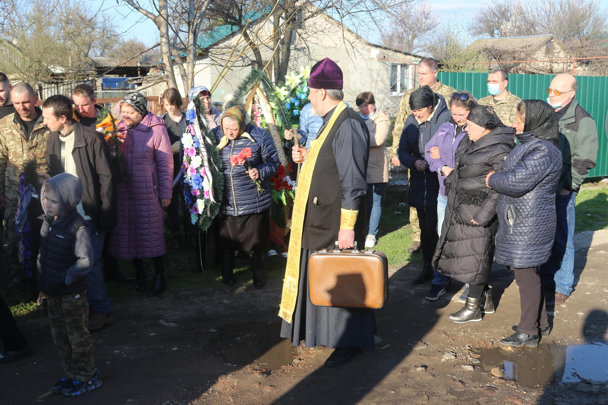 Церемония прощания по всем военным канонам состоялась на местном кладбище. Хоронили Героя с участием почетного караула, военного оркестра, в память о павшем воине раздавался военный салют. Гроб был покрыт Государственным Флагом Украины, затем вместе с Грамотой скорби и уважения от Главнокомандующего Вооруженных Сил Украины его передал семье погибшего начальник отдела морально-психологического обеспечения войск ОК "Север" полковник Олег Гуменный.