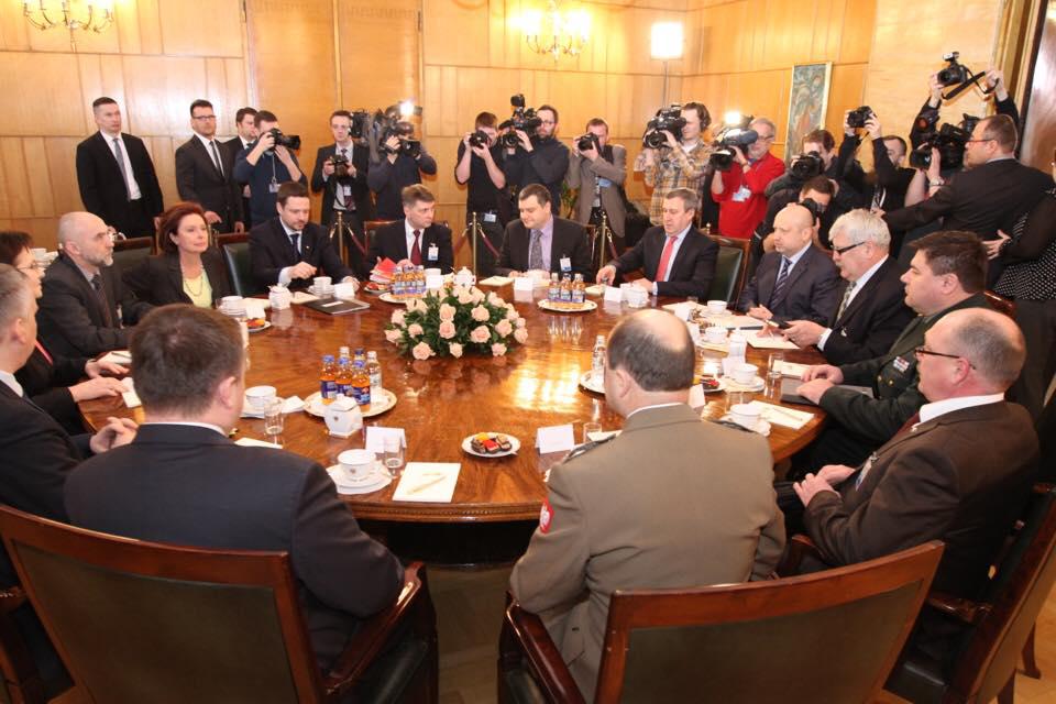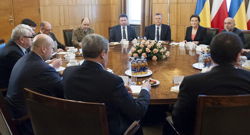 Секретарь Совета национальной безопасности и обороны Украины Александр Турчинов встретился с премьер-министром Республики Польша Евой Копач и вице-премьер-министром, министром национальной обороны Республики Польша Томашем Семоняком.