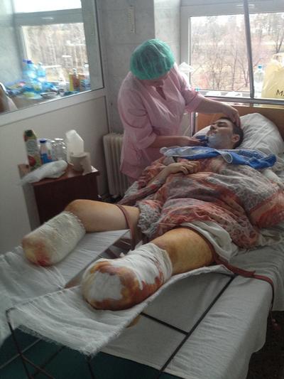 - Не могу пока даже прогнозировать, когда мы сможем перевести Вадима в отделение, - говорит заведующая гнойно-септической реанимацией столичного Центра термических травм и пластической хирургии киевской клинической больницы № 2 Наталья Исаенко.- У Вадима пострадали не только стопы, но и голени, есть отмершие участки кожи. Но мы бьемся за каждый сантиметр пострадавших тканей. Вадиму предстоит долгое лечение и восстановление. К сожалению, некроз глубоко поразил ступни. Лечение, которое мы проводили, не дало эффекта. Мне самой больно говорить о том, что этому молодому бойцу, оставшемуся без руки, мы ампутировали еще и обе ступни.