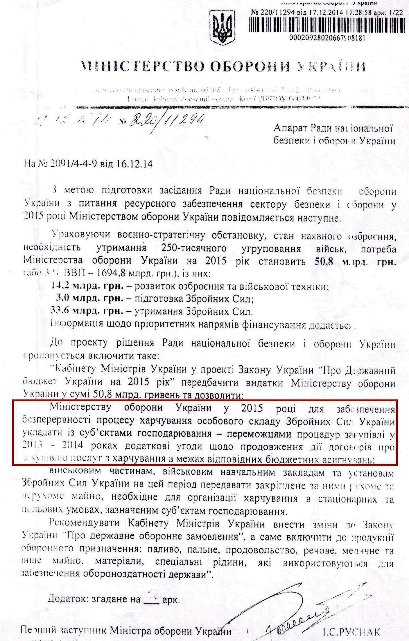 Автор располагает предложением МО в бюджет-2015 от 16 декабря 2014 за подписью первого заместителя министра обороны Ивана Руснака относительно бессрочного продления соглашений с четырьмя названными компаниями.