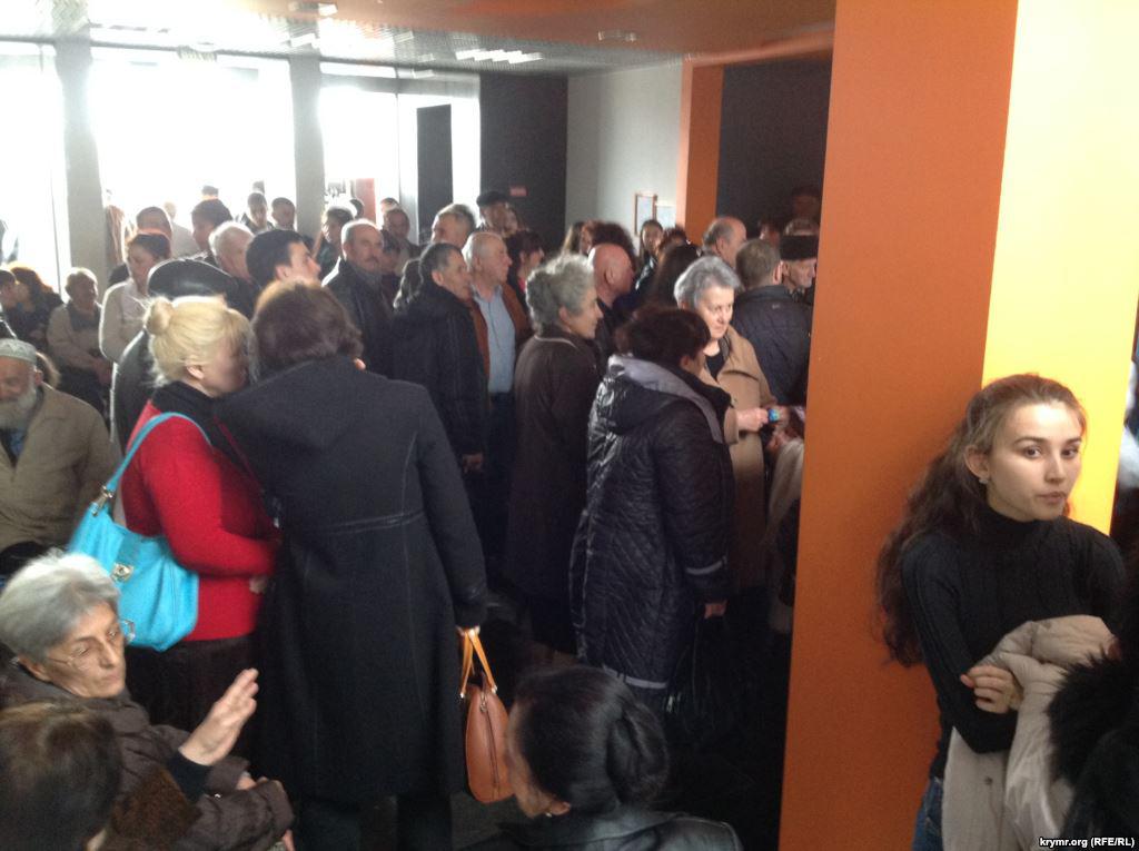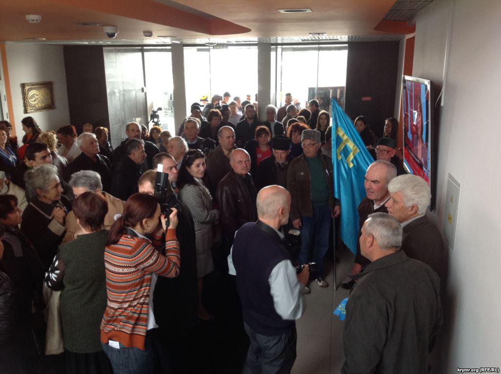 Около сотни крымских татар пришли на телеканал ATR в Симферополе, чтобы поддержать национальный телеканал, где 31 марта проходит день открытых дверей.