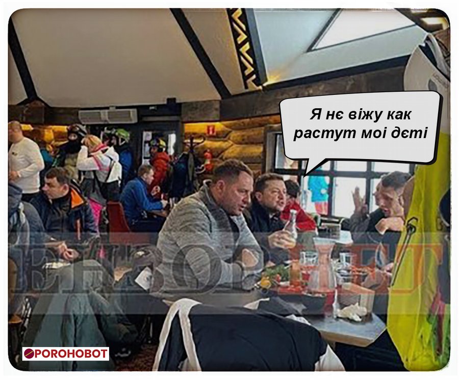 Зранку до мережі потрапило фото https://news.depo.ua/ukr/news/na-rozlivi-v-bukoveli-zelenskogo-zaskochili-z-ermakom-u-kafe-na-lizhnomu-kurorti-202201061409749 Володимира Зеленського, який наливає прозору рідину у склянки свого оточення, а згодом у телеграм-каналах почали публікувати відео з машинами з нібито кортежу президента, передає Depo.ua.