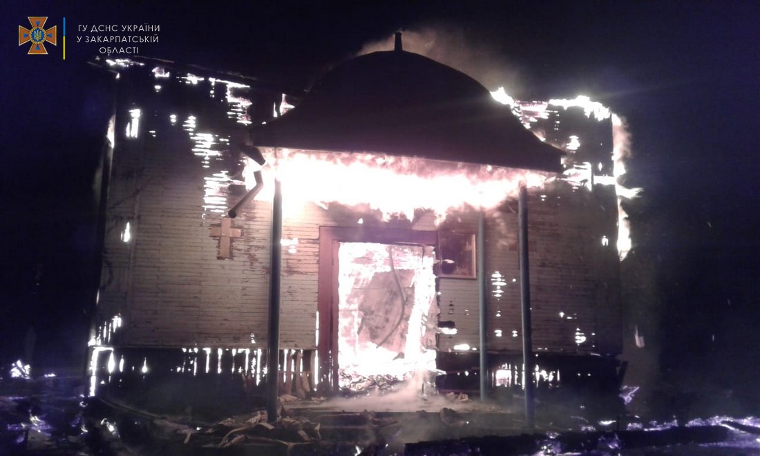 "...Более двух часов спасатели боролись с пожаром на 100 кв. Здание было деревянным и сгорело дотла. Пламя уничтожило кровлю церкви, стены и все, что находилось внутри здания, сообщается в https://lb.ua/go.php?url=aHR0cHM6Ly93d3cuZmFjZWJvb2suY29tL2VwYXJjaGlhL3Bvc3RzLzQ3NDM2MzgyODkwNDg4NTk= Facebook Мукачевской епархии УПЦ МП.