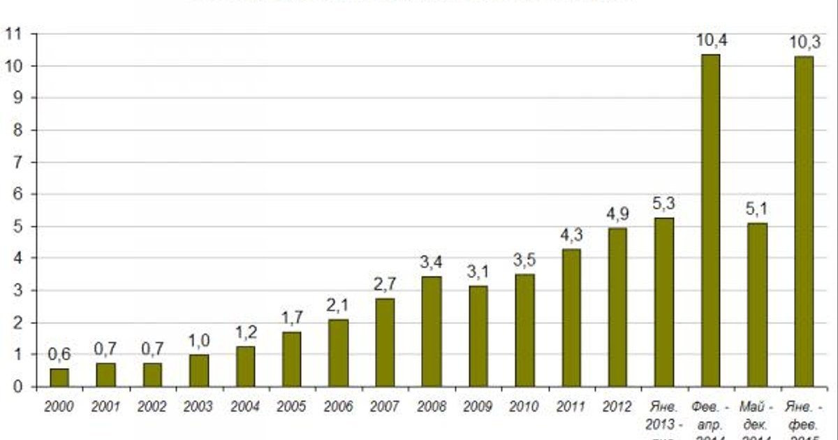 | Январь - февраль 2015 | 1316 | 20,6 | 879,4 | 131,8 | 43,3 | 12,68 |