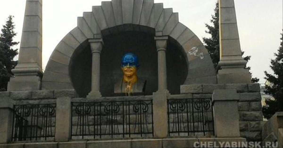 Бюст Ленина в центре Челябинска в ночь на понедельник, 6 апреля, раскрасили в цвета украинского флага.