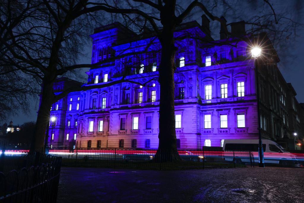 Здание МИД Британии подсветили синим и желтым. ФОТО