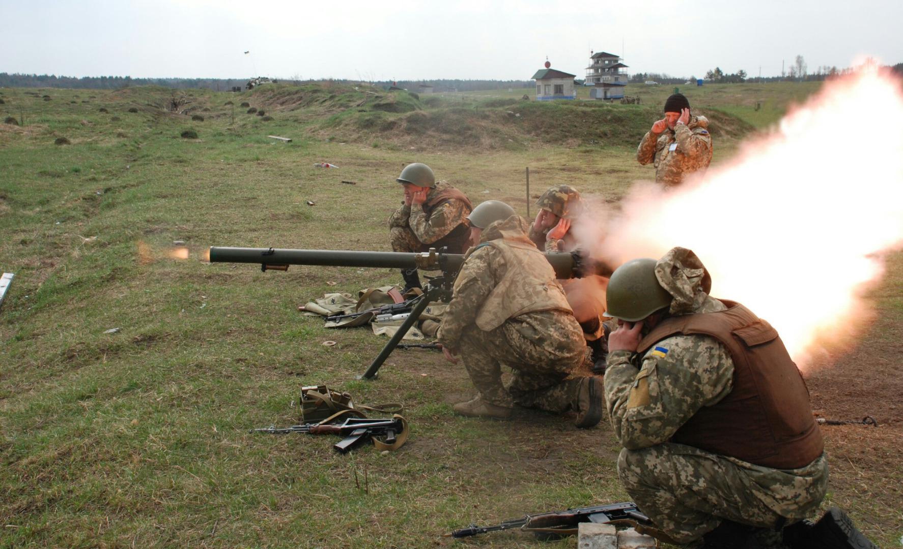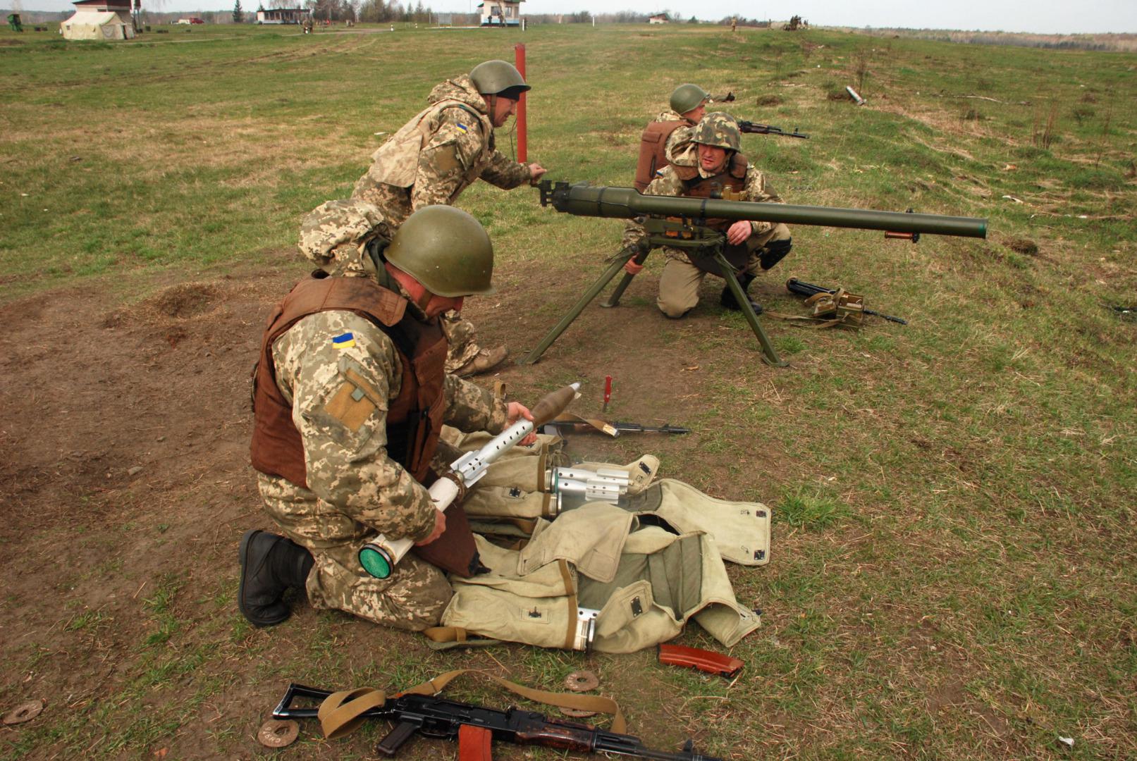 На всех участках военного стрельбища мобилизованные военные выполняют упражнения стрельб из различных видов стрелкового оружия. Здесь настоящую слаженность демонстрируют расчеты станковых противотанковых гранатометов СПГ-9 "Копье". Это оружие является эффективным средством борьбы с бронированной техникой противника и фортификационными сооружениями.