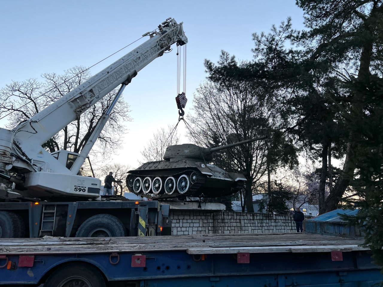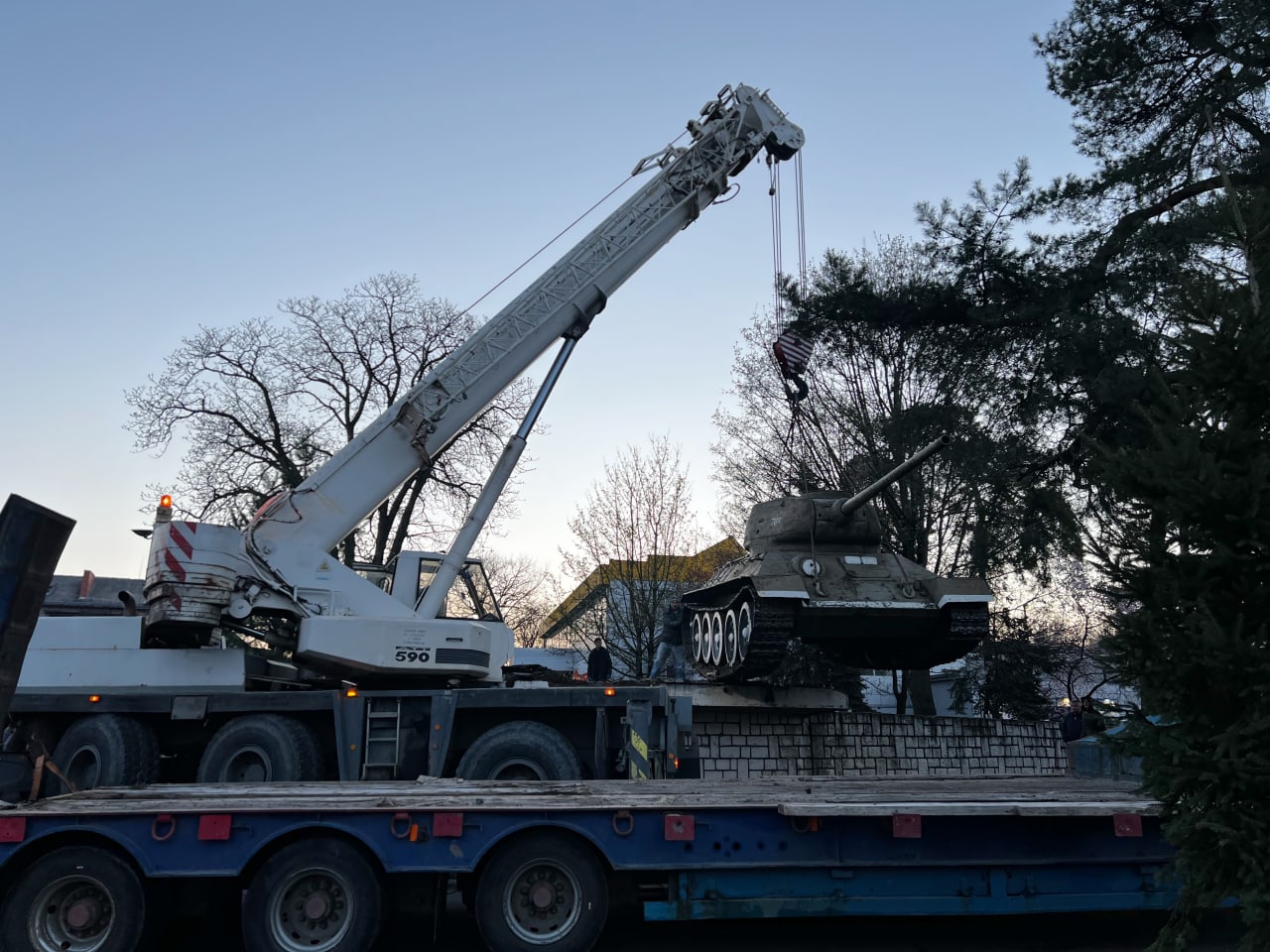 Памятник советскому танку демонтирован в Мукачево. ФОТОрепортаж