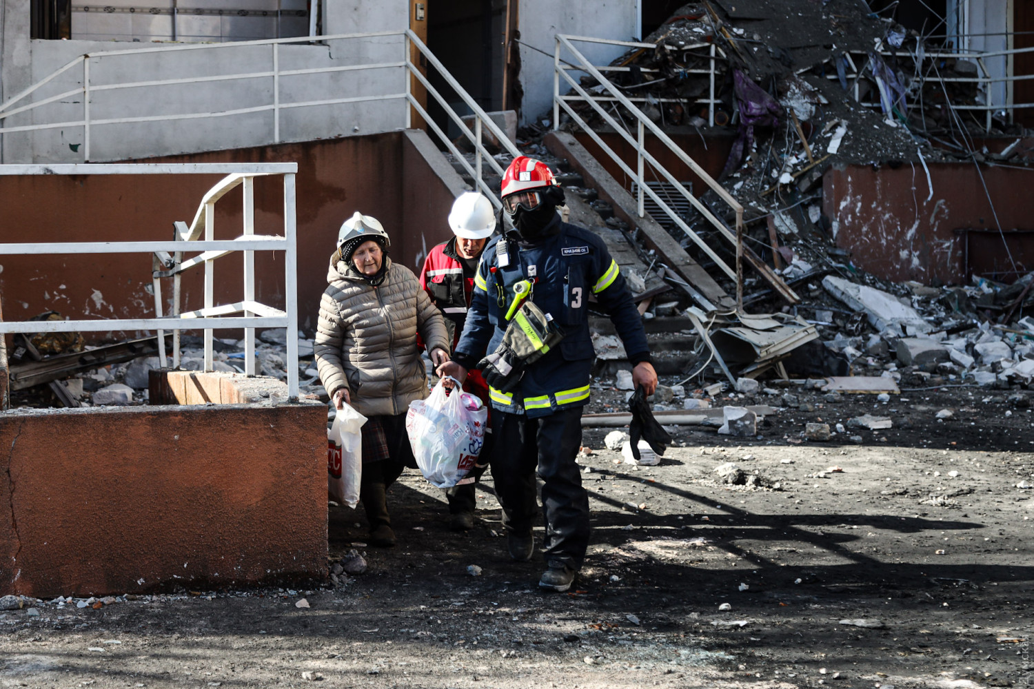 Спасатели начинают понемногу пускать жильцов забрать уцелевшие вещи. Одна из жительниц вернулась за котом, который, возможно, забился под ванную и выжил.