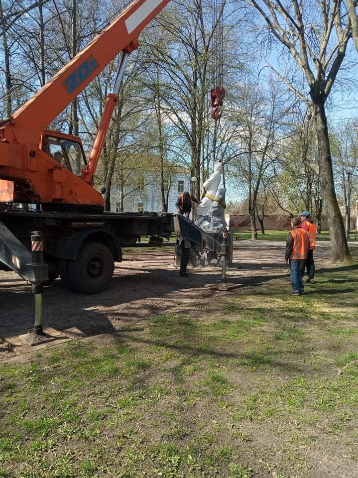 В Конотопе был демонтирован памятник Пушкину. В процессе демонтажа в статуе отпала голова.