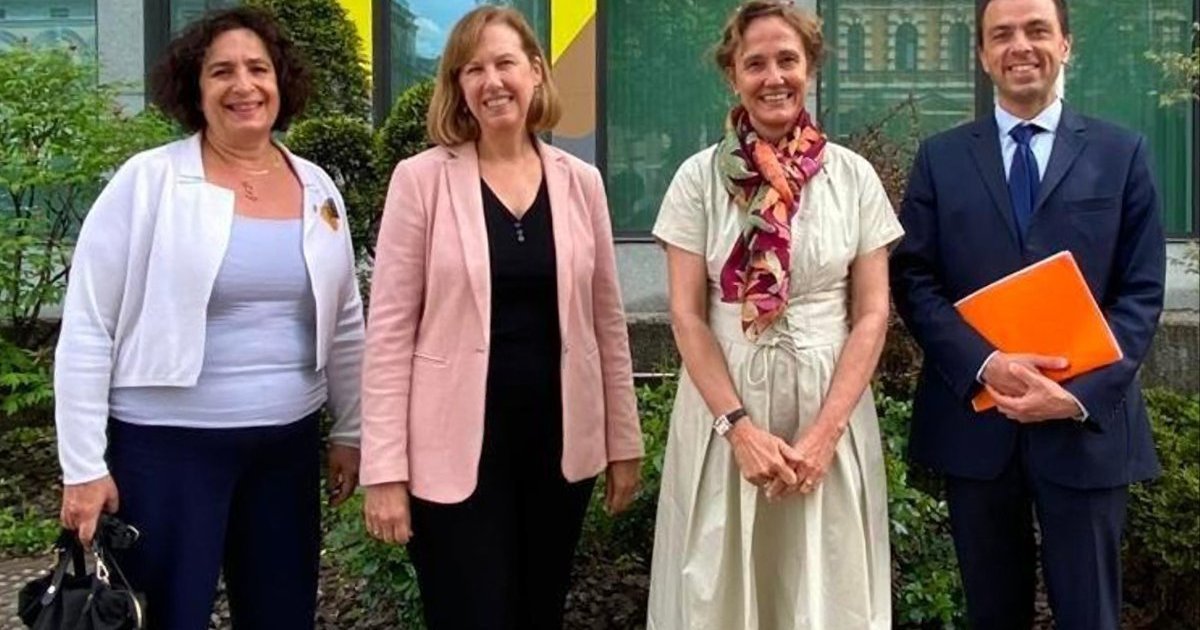 (Слева направо: посол Великобритании Мелинда Симмонс, Временный поверенный посольства США Кристина Квин, Посол Германии Анка Фельдгузен, заместитель Посла Франции Бруно Косанель".