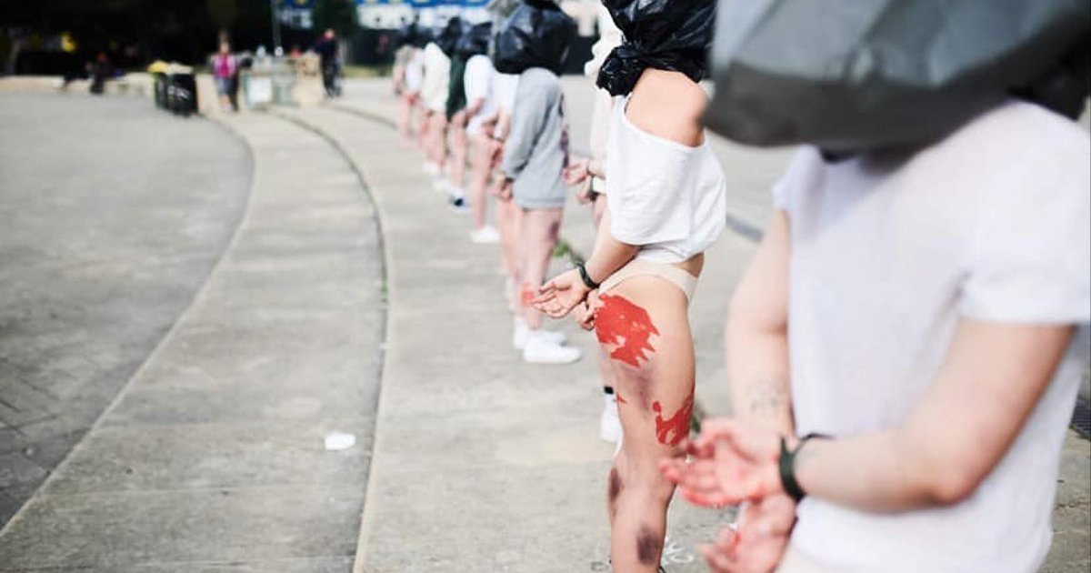 Участницы акции в Вене вышли в популярный среди молодежи парк возле Карлплатц в нижнем белье, обляпанном кровью, чтобы привлечь внимание австрийской и мировой общественности к проблеме сексуального насилия на развязанной Россией войне в Украине.