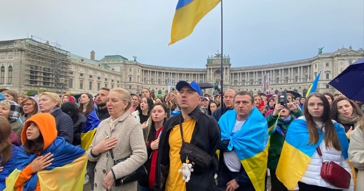Перед началом пересмотра на Площади героев прошла акция в поддержку Украины и ее европейского пути, в которой приняли участие, среди других, украинские и австрийские политики.