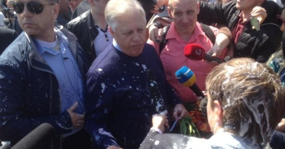 Симоненко на митинге в Киеве облили кефиром. ФОТОрепортаж
