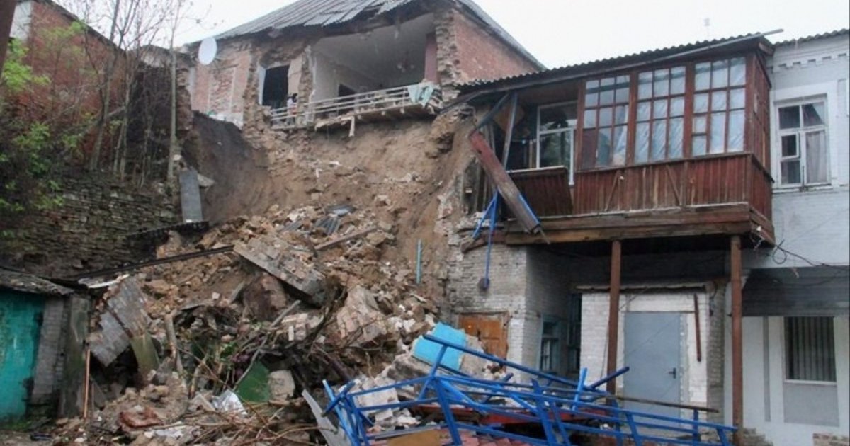 В результате обвала этой стены, были разрушены два кирпичных гаража, еще один поврежден. Также частично разрушена пристройка к дому по ул. Фрунзе, и полностью разрушенные деревянные лестницы, которые ведут на второй этаж, где проживает семья с тремя детьми. Они эвакуированы и находятся у родных.