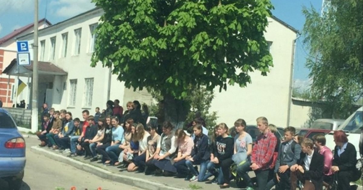 Жители Волынской области становились на колени перед траурной колонной, которая 6 мая везла на родину тело погибшего бойца спецподразделения "Донбасс" Национальной гвардии Ивана Сотника.