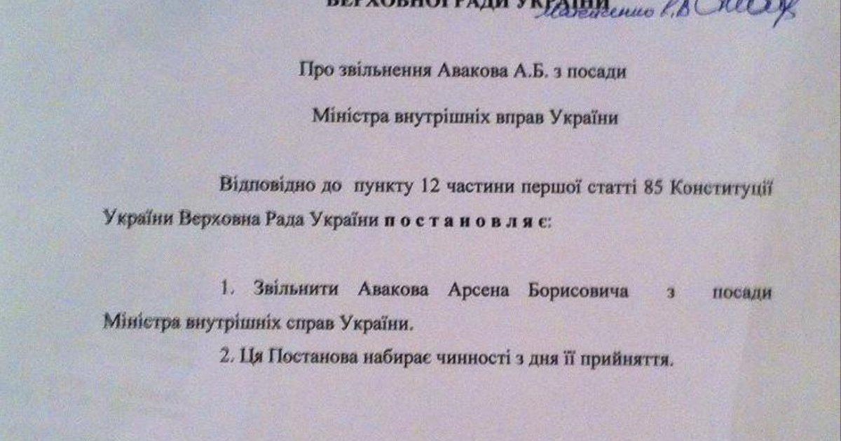 Десяток нардепов в Раде хотят уволить Авакова. ДОКУМЕНТ
