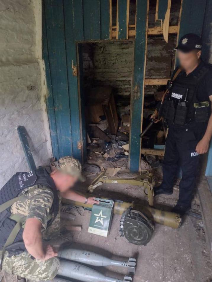 Первый тайник нашли на территории Семеновской громады. За обшивкой стены оккупанты спрятали противотанковую ракету "Фагот", три минометные мины калибра 120 мм и снаряженный магазин к автоматическому станковому гранатомету АГС-17.