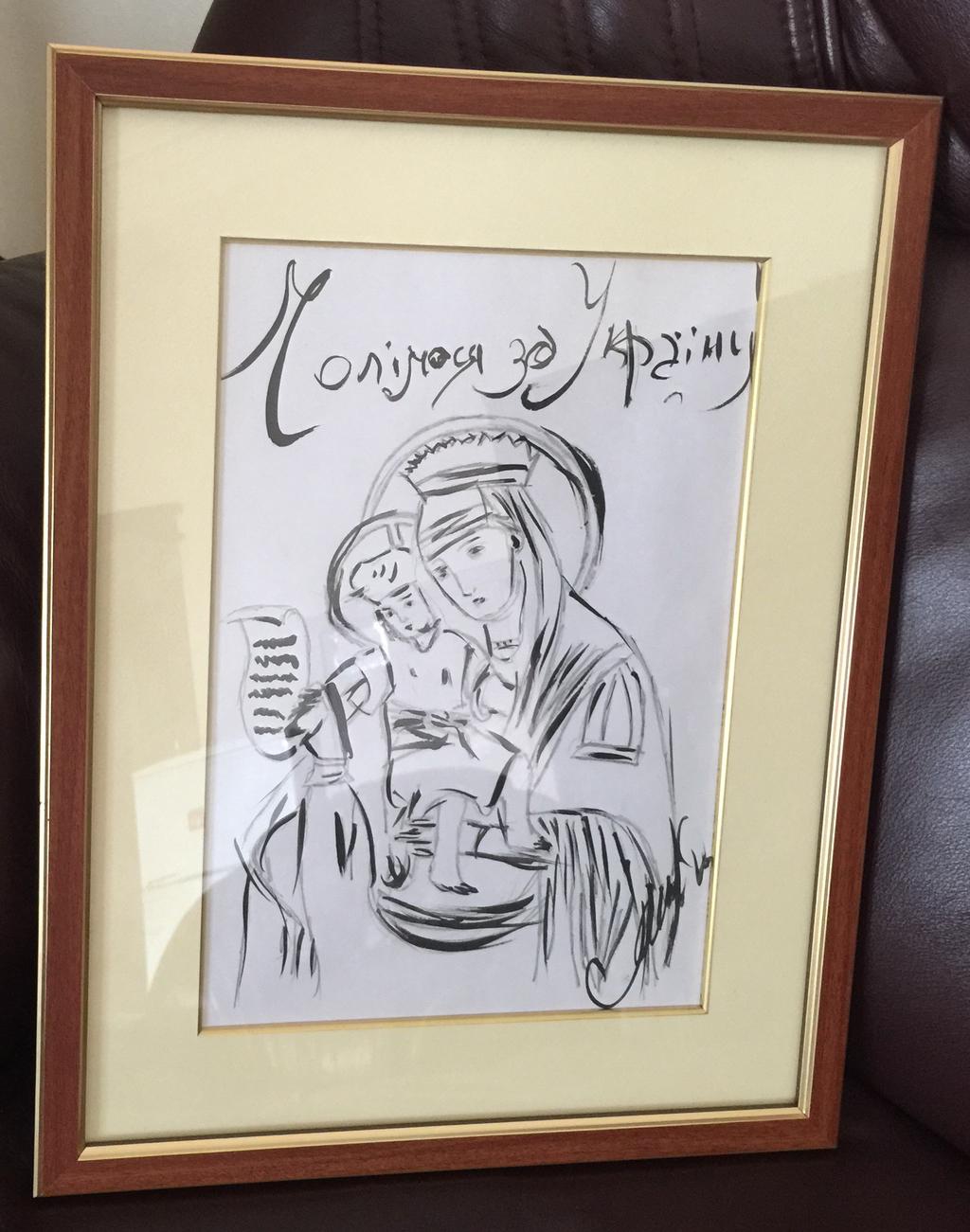 Он также сообщил, что передал Папе в подарок рисунок, на котором изображена Дева Мария с младенцем на руках, нарисованный в одном из украинских детских домов.