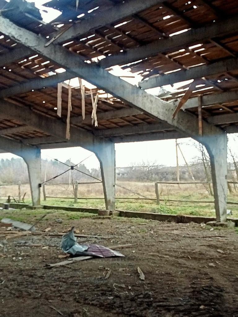 "Пострадало местное агропредприятие. Взрывы частично разрушили крыши и стены в трех складах с зерном. Также повреждены 2 трактора и 3 автомобиля. "Прилеты" были и рядом с админзданием. Там повреждены окна и электропровода", - говорится в сообщении.