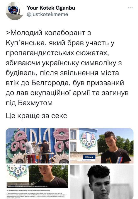 Говорят, владелец переобулся один из первых и значительно расширил свой бизнес. Осенью, когда понял, что русня уже точит лыжи, попытался провернуть финт, разыграв с кацапами скандал с украинскими песнями в забегаловке. https://twitter.com/i/status/1601547298227429377 Но херсонцы всё помнят.