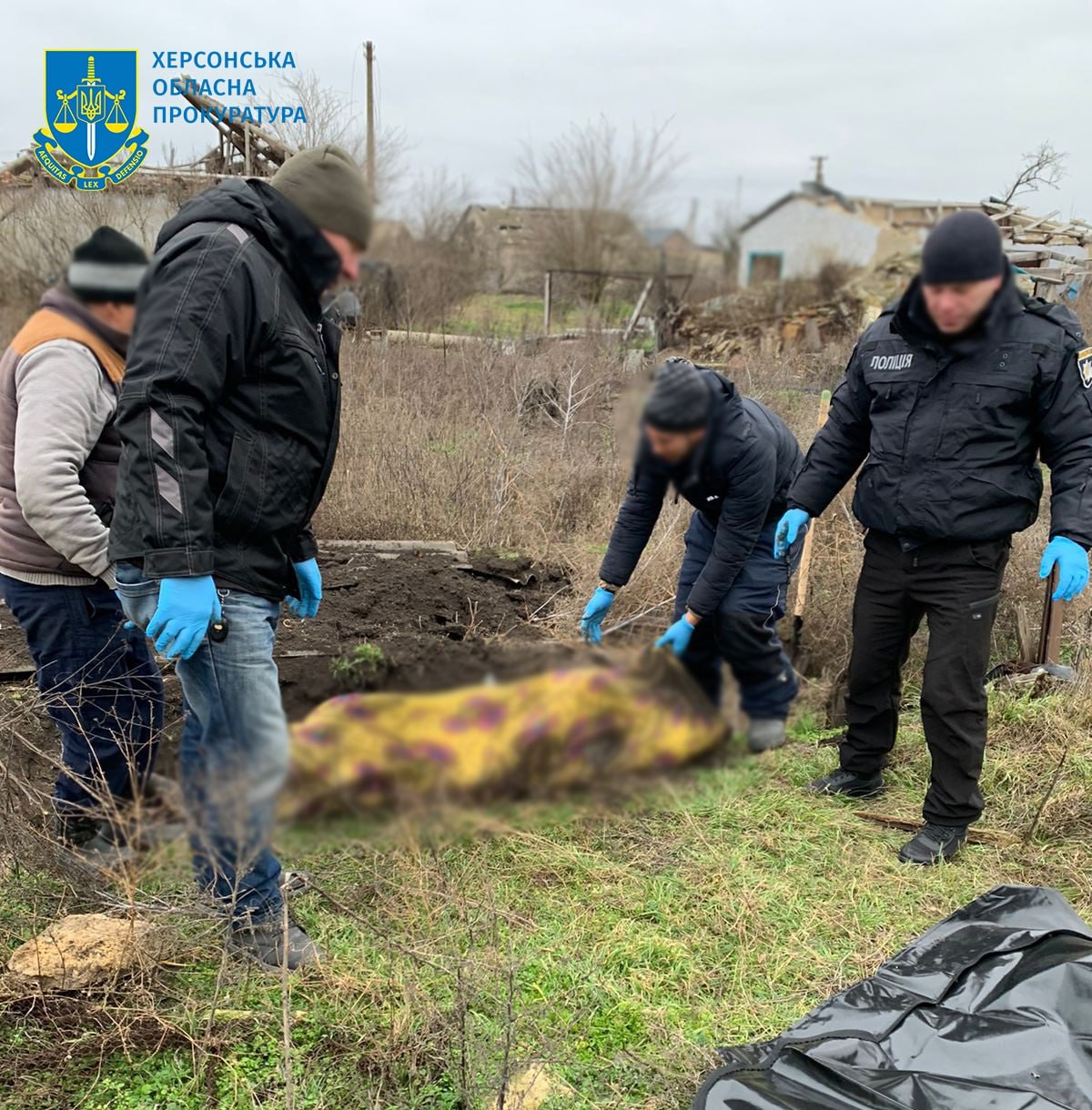 Правоохранители провели эксгумацию и осмотр тел трех гражданских лиц. Установлено, что тела принадлежат трем жителям с. Посад Покровское, среди которых одна женщина.
