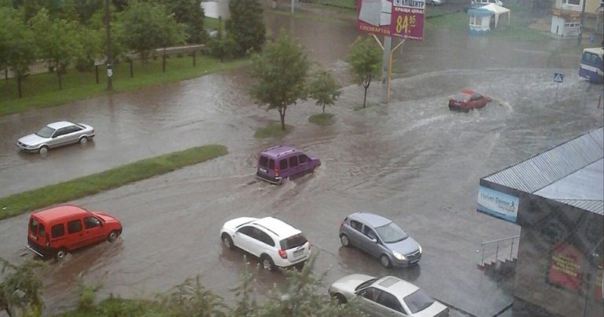 В понедельник около 11:50 в Луцке начался сильный ливень, из-за которого низкие участки и дороги города оказались затопленными.