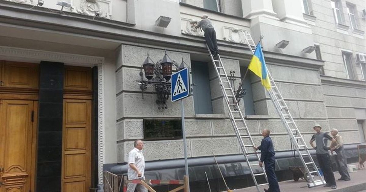 Также сообщается, что герб СССР уже убрали из местного отделения МВД.