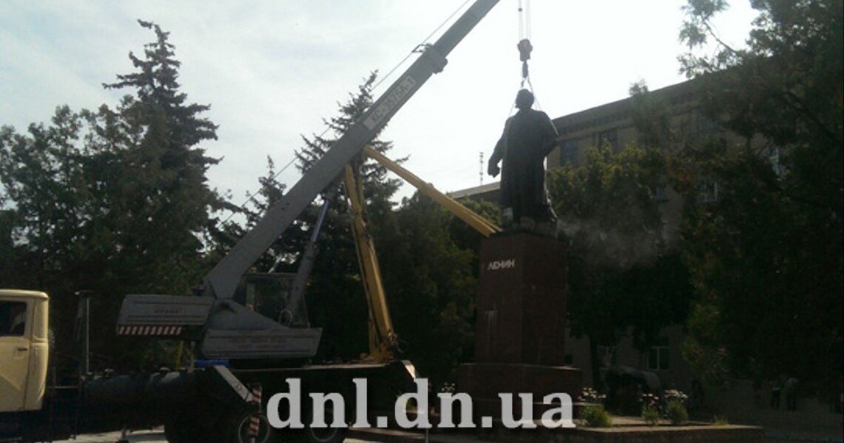 Коммунальные службы демонтировали памятник Ленину на главной площади Дружковки в Донецкой области. Демонтаж осуществлен в соответствии с решением городского совета.