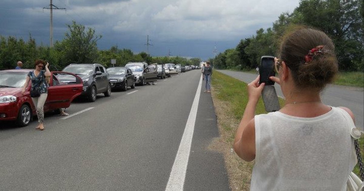 На трассе Мариуполь-Донецк в обоих направлениях выстроилась 60-километровая пробка из автомобилей, и с каждым днем она все увеличивается.