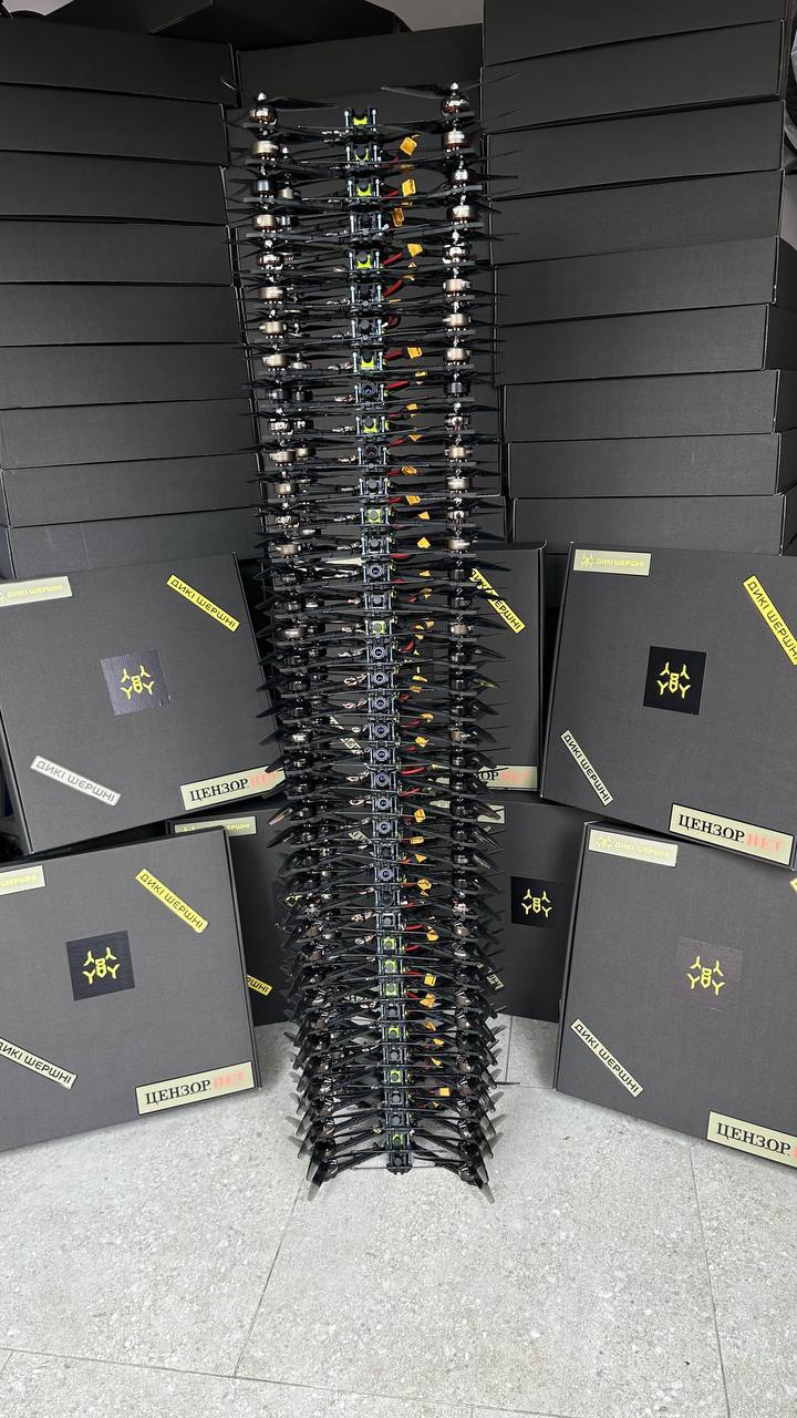 В прошлом месяце Цензор.НЕТ совместно с БФ "Свобода Украины" запланировали изготовить сотню FPV-дронов под брендом "Дикі Шершні".