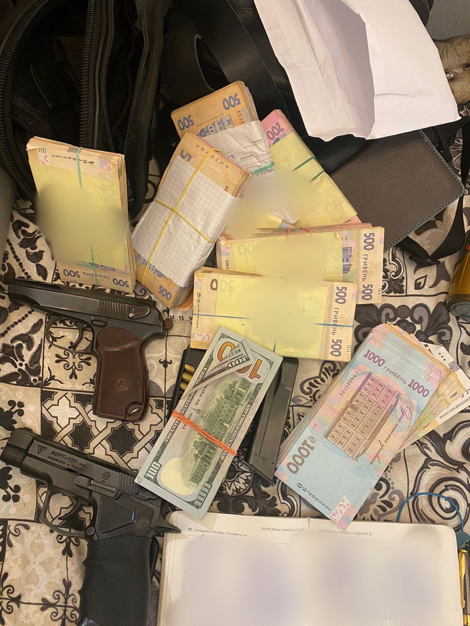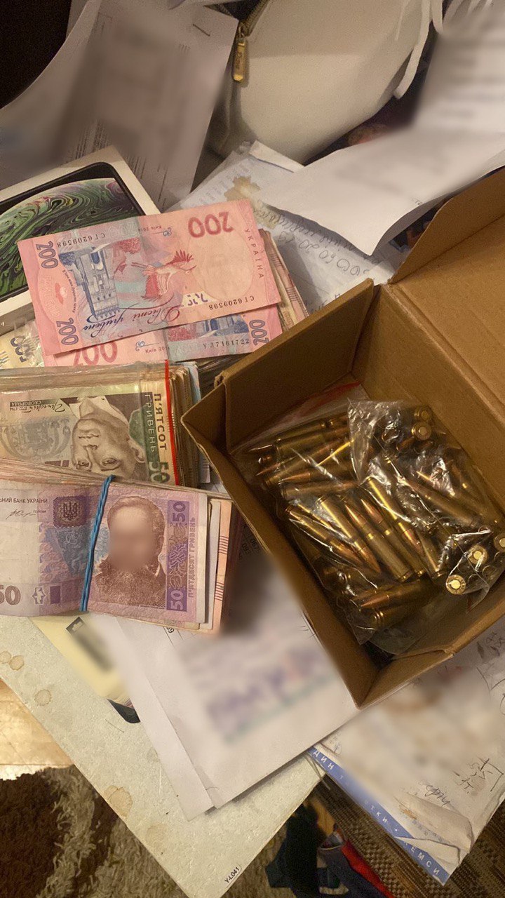 В ходе обыска у руководителя и четырех членов преступной организации изъяли оружие и боеприпасы, деньги, черновые записи и другие вещественные доказательства.