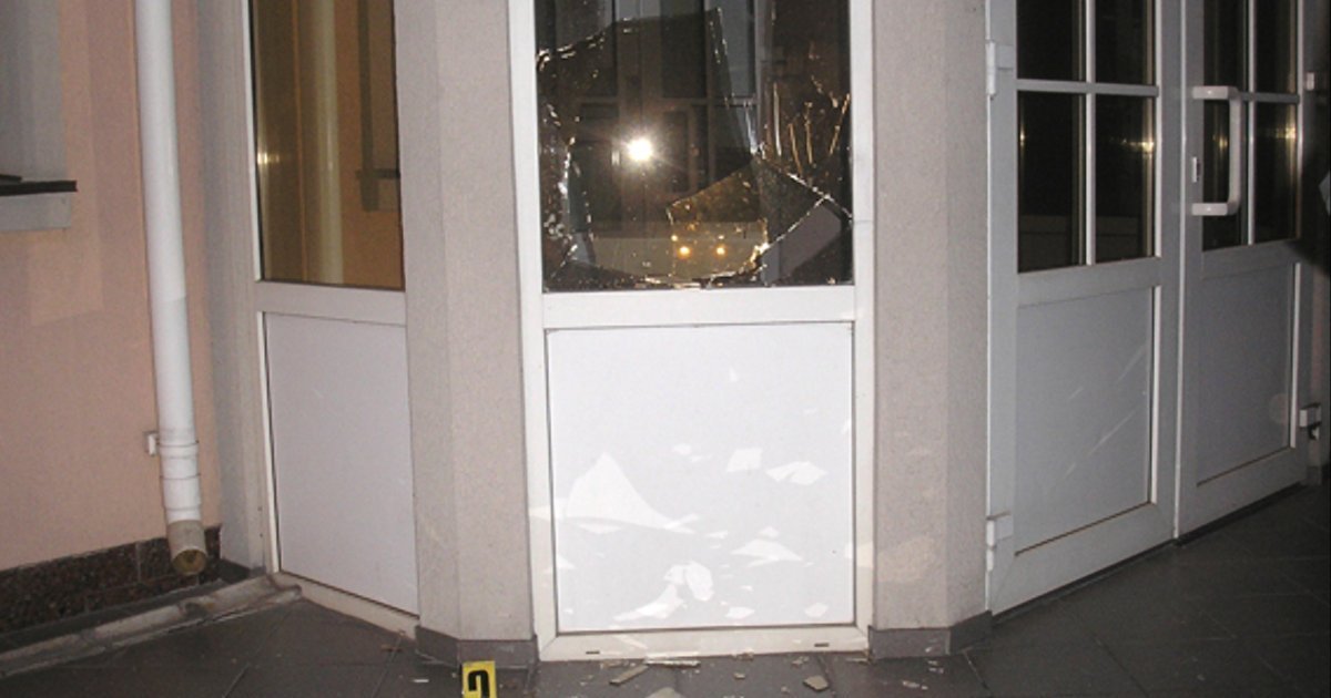 На покрытии плитки тротуара возле входа в помещение прокуратуры милиция обнаружила воронку диаметром 8-9 см и глубиной почти 9 мм. С места происшествия изъяты остатки взрывного устройства, которые направлены на экспертизу.