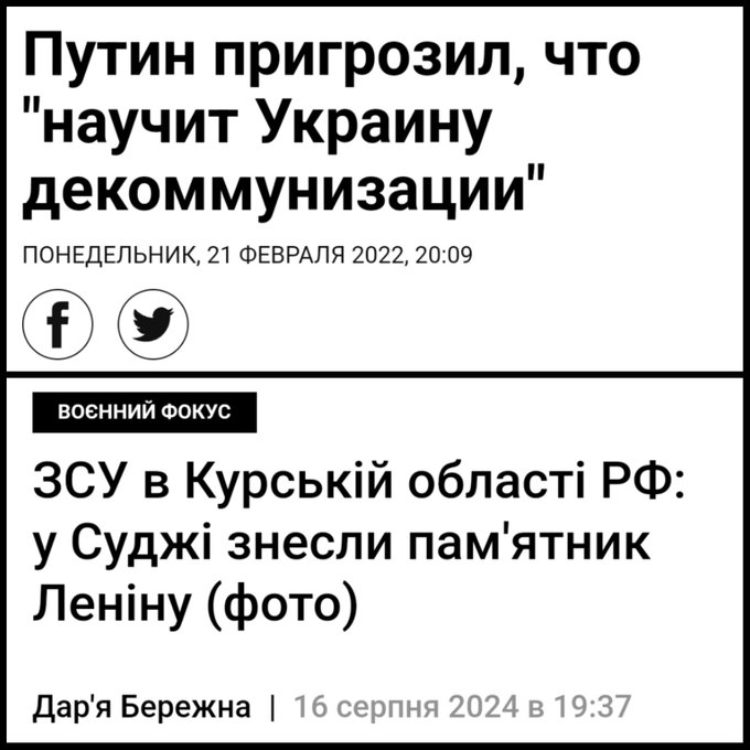 В российском городе Суджа, который контролируют украинские военные, снесли памятник советскому тирану Владимиру Ленину.