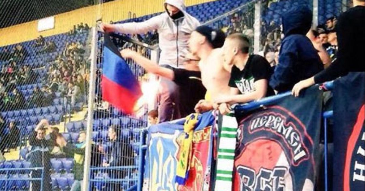 "Ахметов, вон из Харькова": фанаты "Шахтера" сожгли флаг "ДНР". ФОТО