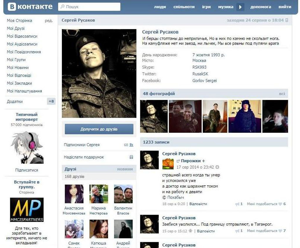 О погибшем Сергее Русакове информации немого. Сюжетов о его гибели журналисты не делали. Страница "ВКонтакте" Русакова была быстро удалена, в твиттере (https://twitter.com/rusaksk ) последняя запись от 15-го августа 2014-го года, что его отправляют к границе, в Таганрог.
