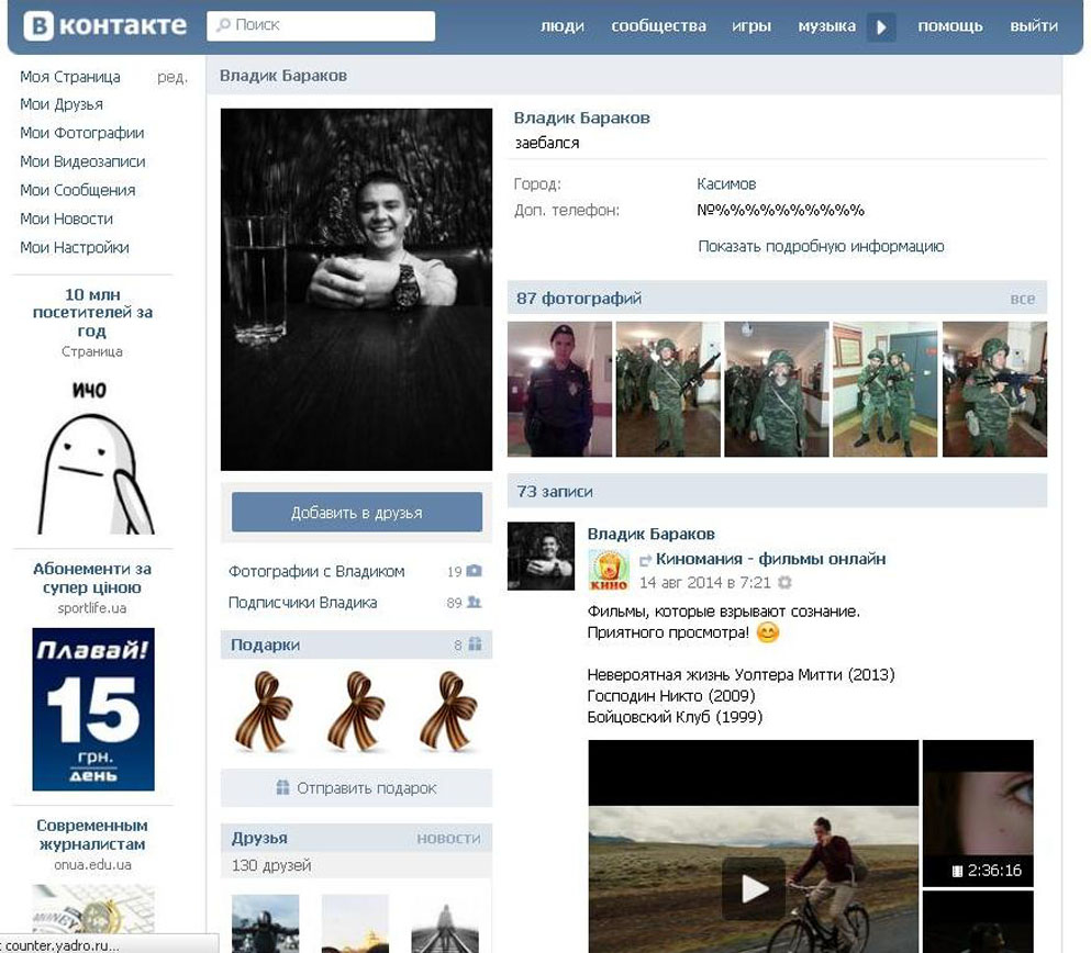 С Бараковым всё иначе, эту смерть замолчать не получилось. В соцсетях остался его профиль:
