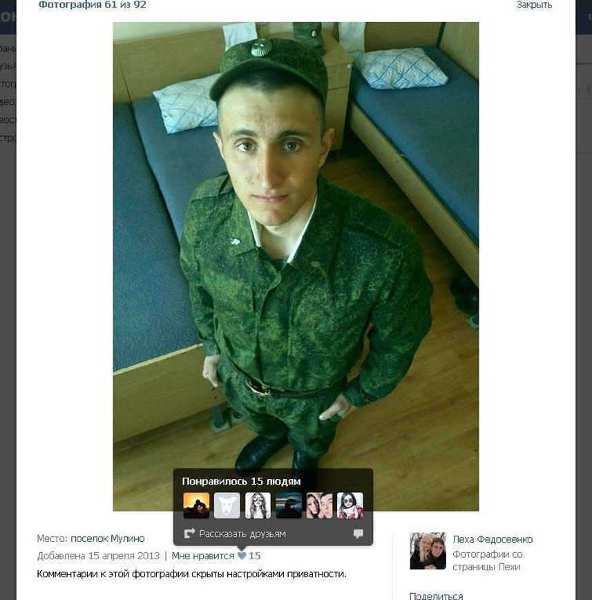 16 - Леха Федосеенко (на тот момент, судя по фото с его страницы, не был военнослужащим; он отслужил срочную службу в 6-й ОТБр, демобилизовался в 2013-м году; приехал к бывшим сослуживцам повидаться, так как проживает от полевого лагеря бригады - в Ростове-на-Дону) https://archive.today/ElAfL