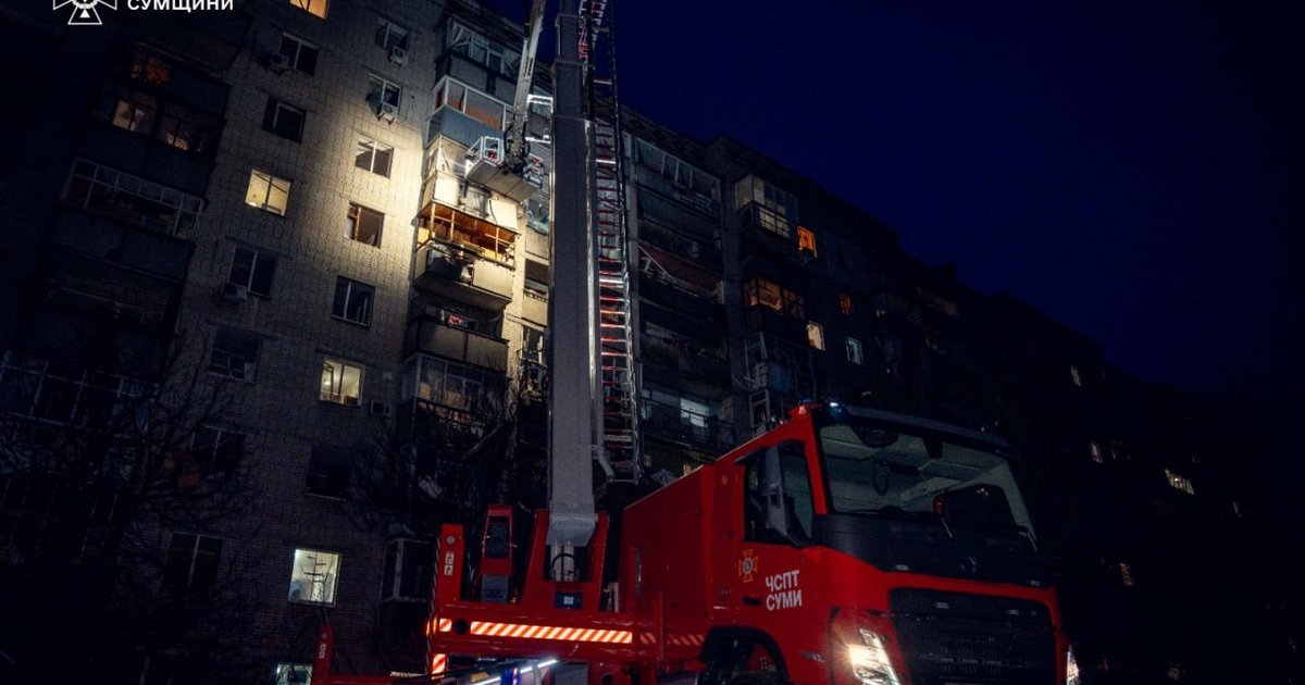 Ракетный удар РФ по Сумам: спасатели ликвидировали все очаги возгорания. ФОТОРЕПОРТАЖ