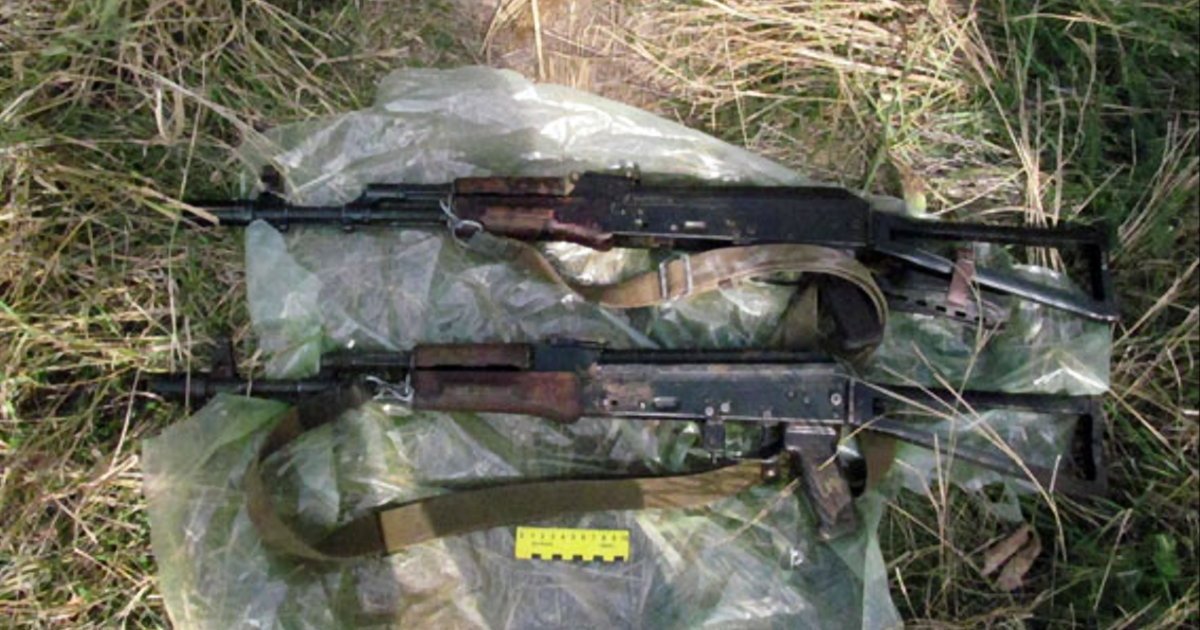 В полиэтиленовом свертке было спрятано 2 автомата, а также 2 магазина с 56-ю патронами.