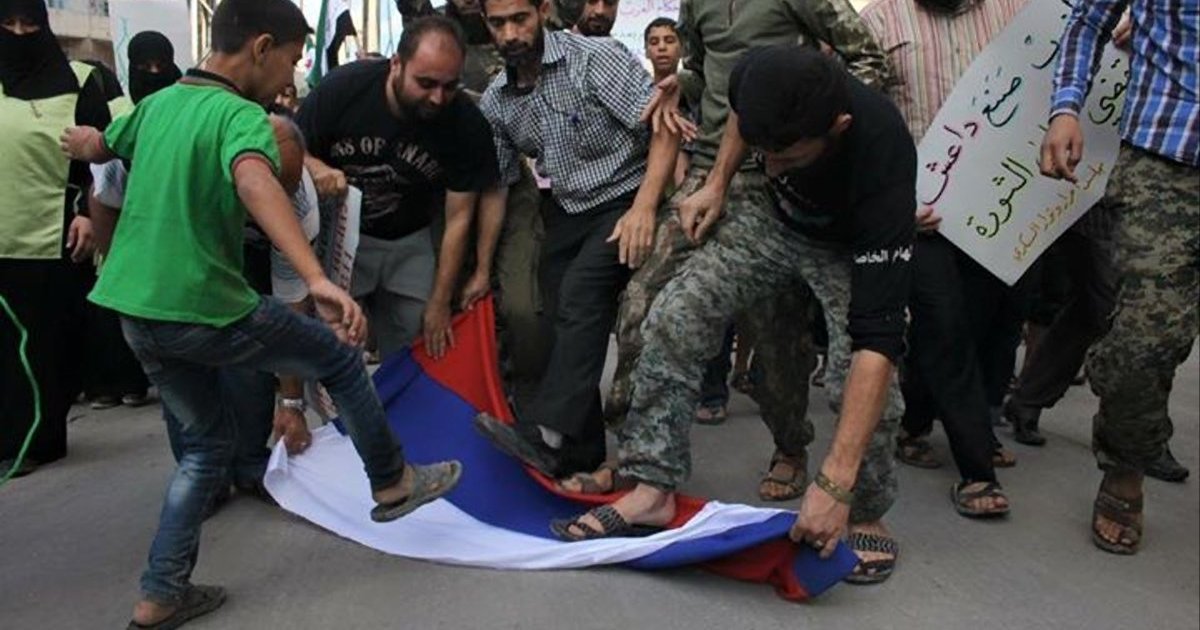 Об этом сообщает Цензор.НЕТ со ссылкой на Facebook Radio Free Syria. Демонстрации в городе Алеппо проводятся в знак протеста против российских бомбардировок сирийских городов, "которые привели к смерти сотен детей, под предлогом войны с терроризмом". В сообщении приводится фотография, на которой бородатые мужчины с ожесточением топчут российский флаг, брошенный на землю. На заднем плане видны люди с плакатами на арабском языке.4 октября, российский Генштаб заявил, что в результате авианалета, совершенного 4 октября на позиции боевиков ИГ в районе Алеппо, была уничтожена бронетехника террористов. Уточнялось, что фронтовые бомбардировщики Су-24 уничтожили 32 объекта бронетехники, в том числе танки, которые террористы планировали использовать в районе Алеппо. Боевые машины были захвачены боевиками у вооруженных сил Ирака и Сирии.