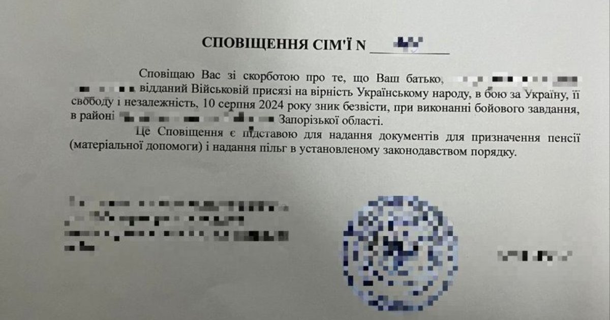 Во время проверки выяснилось, что мужчина предоставил фальшивое извещение о пропаже без вести отца. Документ якобы подтверждал исчезновение отца на Запорожском направлении летом 2024 года. Однако во время детальной проверки установлено, что этот "документ" является подделкой.