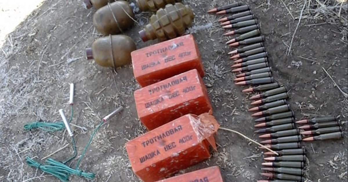 Вблизи села Первомайское Володарского района Донецкой области сотрудники милиции обнаружили 8 боевых гранат, 4 тротиловые шашки и патроны для автомата "Калашникова".