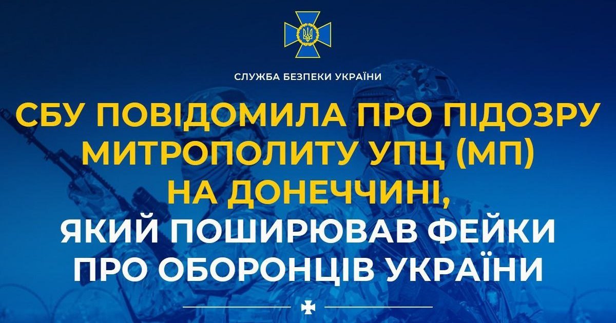 СБУ сообщила о подозрении митрополиту УПЦ МП в Донецкой области за фейки о защитниках Украины. ФОТО