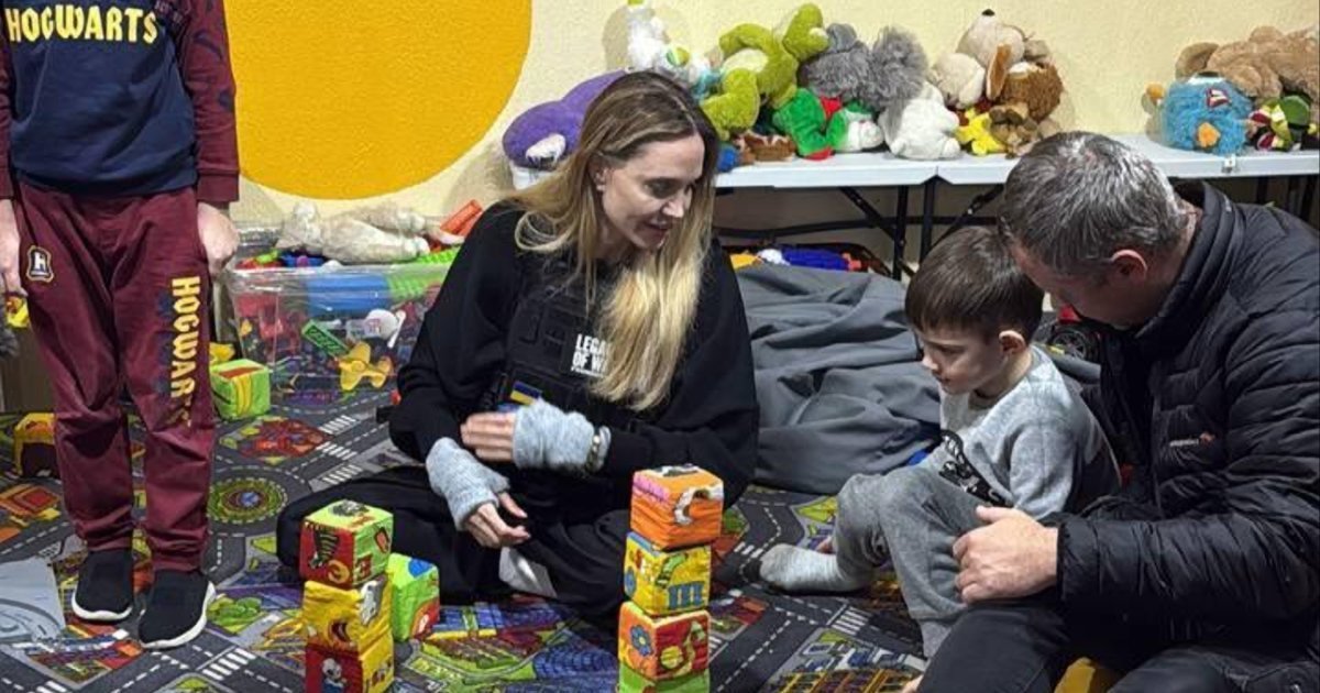 На фото, которые распространяют в соцсетях, видно, что Анджелина Джоли встретилась с детьми в укрытии.