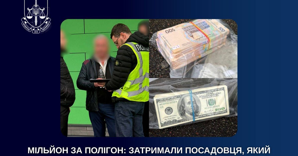 Во время спецоперации полицейские Департамента стратегических расследований и следователи полиции Киева задержали мужчину сразу после получения первой части средств — 185 тысяч гривен и 15 тысяч долларов США. Еще 5 тысяч долларов он планировал получить после проведения формального конкурса на аренду полигона.