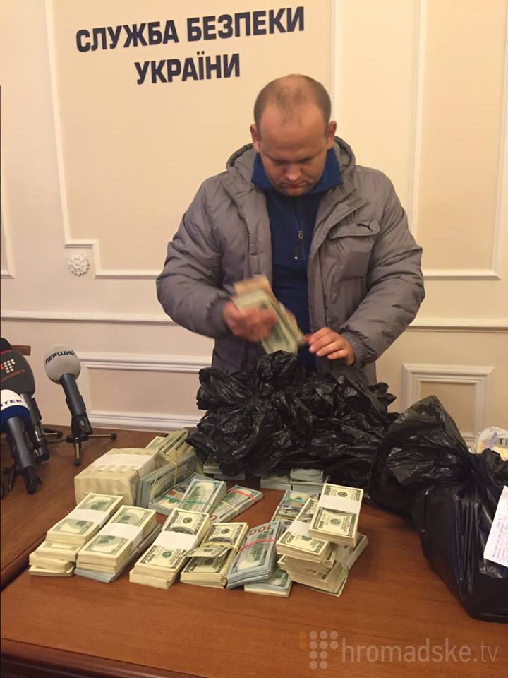 Сотрудники Службы безопасности Украины во время брифинга показали вещественные доказательства по делу лидера партии УКРОП Геннадия Корбана.