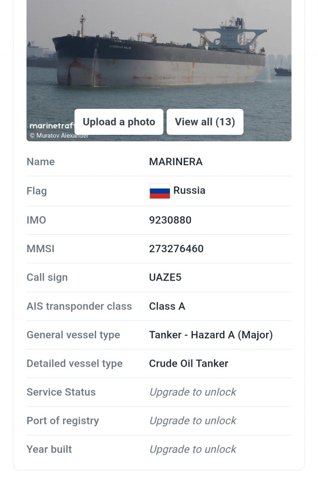 Окрім Marinera, під російський прапор на початку січня 2026 року почали масово переходити й інші підсанкційні танкери «тіньового флоту». .Бо саме вони часто використовують схеми з постійною зміною назв, прапорів і реєстрів, щоб ускладнити контроль і уникати відповідальності. Таким чином росія намагається надати йому свій «державний захист» через зміну прапора. . Але ж як бачимо спроба змінити реєстрацію не вирішує проблему. Навіть якщо зараз судно і числиться російським, це не означає, що воно автоматично отримує імунітет за попередні дії.....Що зараз американці своіми діями доволі успішно і рішуче доводять...